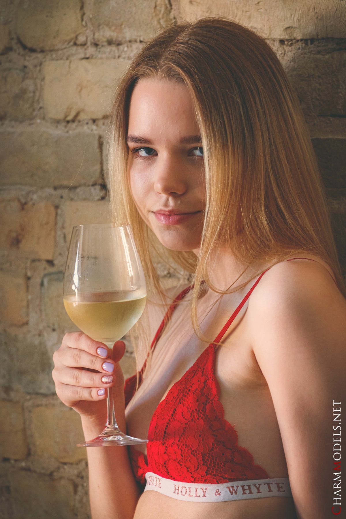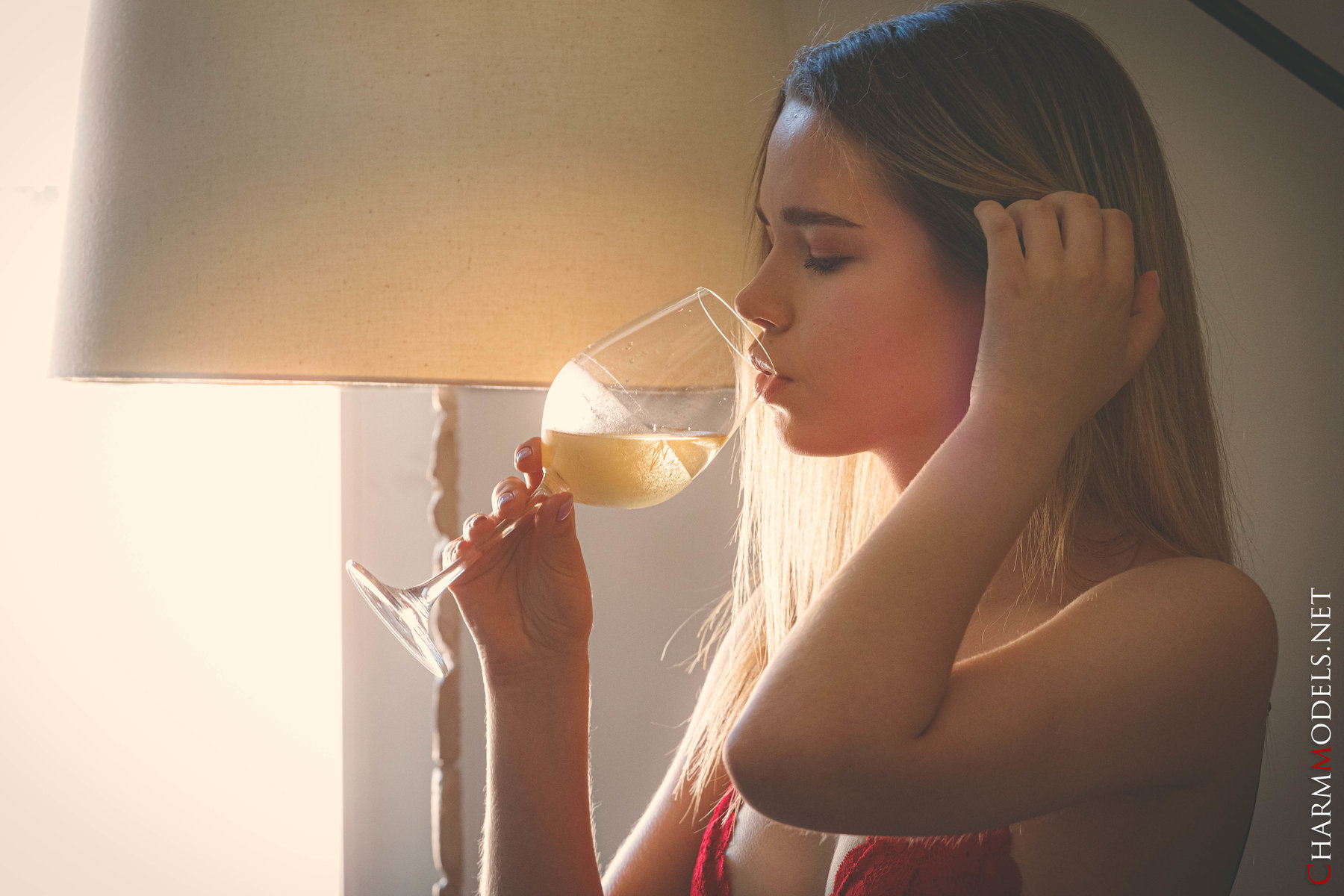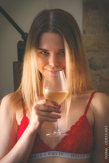 Juna in Charm Models set Relaxing And Drinking Wine