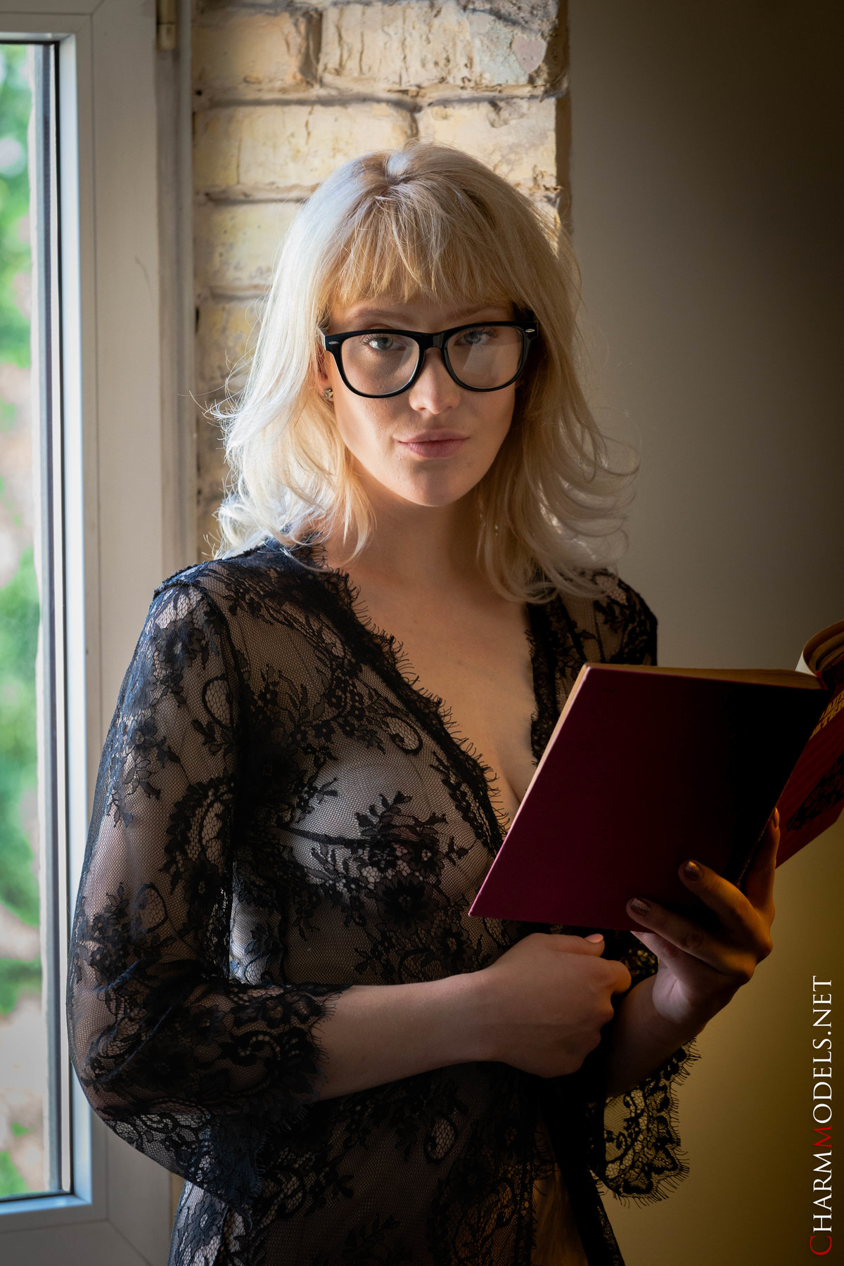 Limona in Charm Models set Reads Book In Sexy Transparent Lingerie